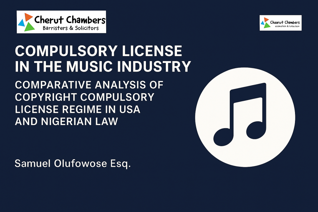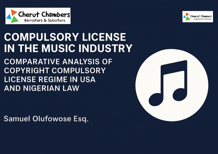 The concept and application of compulsory license vary according to the laws applicable in each jurisdiction. Considering the collaborative style and format practice of the Nigerian entertainment industry and its US counterpart, a comparison of the applicable laws in both countries on compulsory license necessarily reveals the disparity and large gap between both especially as it relates to the industry.
